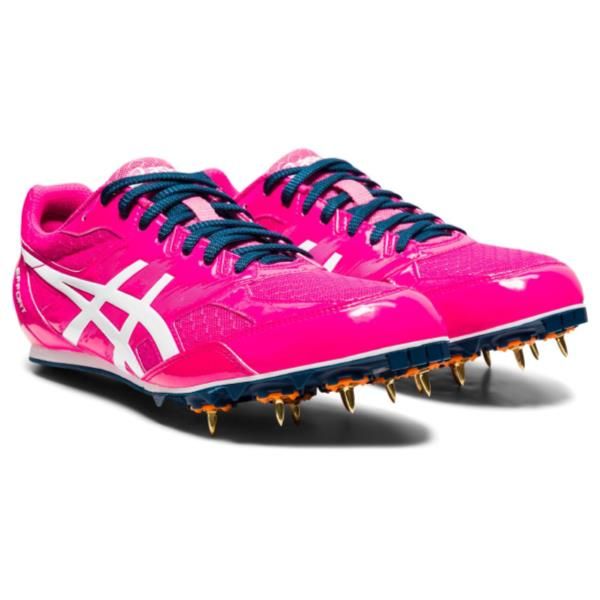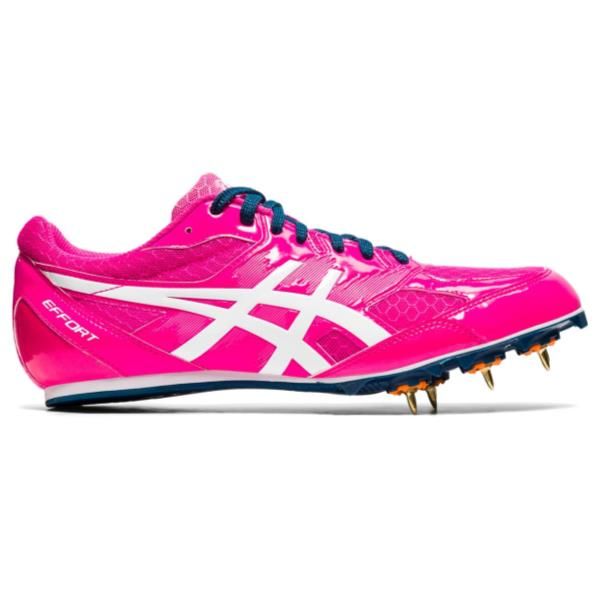 アシックス(asics)陸上スパイク EFFORT MK 品番:1091A014 カラー:ピンク×ホワイト(702) サイズ:20.0~29.0、30.0cm アッパー素材:合成繊維/人工皮革 アウター素材:合成底/ゴム底 スパイク:金属製(鉄)=アンツーカー用 12mm:取り替え式 オールウェザー:土トラック兼用スパイク オールラウンド用:トラック種目全般 付属品:シューズ袋(中国製)・ハンドル(台湾製)・スパイクカバー(中国製) 生産国:ベトナム製