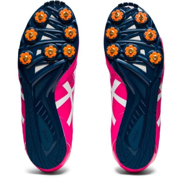 アッパーは通気性を向上させホールド性を高める人工皮革で補強。 ミッドソール全面には反発性に優れるSPEVAFOAMを装備し、ヒール部には軽量素材のSOLYTEを搭載。 屈曲性を高めたプレートと耐久性を備えたラバー素材をヒールに用いたアウトソールは、トラックコンディションに合わせて、ピンとアタッチメントの取り替えが可能。