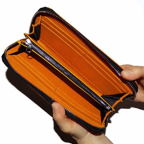 ハタケヤマ(HATAKEYAMA) グラブ革財布 品番:GB-2010 カラー イエロー(YEL) ブラック(BLK) オレンジ(ORG) エコロジーブラウン(EBR) ピンク(PNK) サイズ:幅約20×高約10×奥行約2.2cm 素材:牛革 機能・特徴 カード入れ:計8カ所 チケットなどが入る大きめのポケット:計2カ所 中央部分:ファスナー付きポケット ※製品にならなかった残革使用のため色むらやしわがあります。また同じ商品でも若干色合いや風合いが違う場合がございます。 ※天然皮革を使用しているため、天然由来のキズ・シワがある場合があります。 原産国:日本