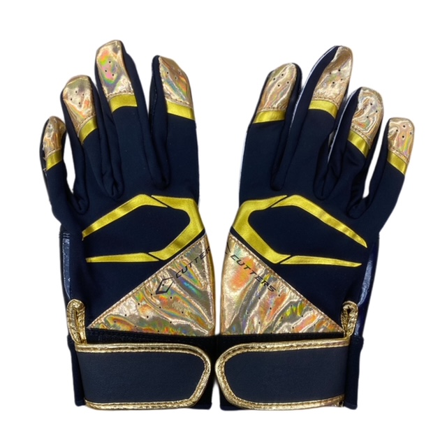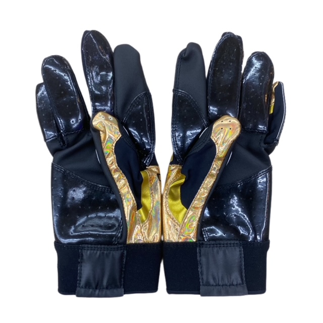 カッターズ(CUTTERS) バッティング手袋 両手用 パワーコントロール 3.0 品番:B442 カラー:ブラック×イリディセントゴールド(BIG) サイズ S(16.3-18.0cm) M(18.0-18.8cm) L(18.8-19.6cm) XL(19.5-20.3cm) 人差し指の先端~手首までの長さ 素材:合成皮革 機能・特徴 革新的グリップ素材「C-TACK」:独自のグリップ素材が高いグリップ力と耐久性を実現。 復活するグリップ力:湿らせた布や水で汚れを落とせばグリップ力が何度でも復活。 全天候対応:晴れでも、雨でも、驚異のグリップ力を発揮 丸洗い可能 原産国:インドネシア