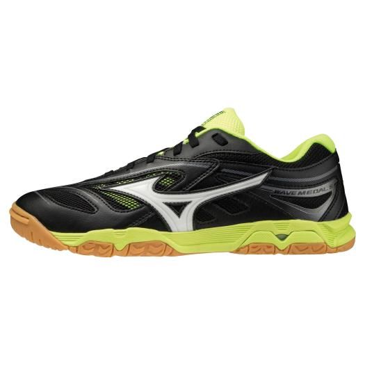 ミズノ(MIZUNO) 卓球シューズ ウエーブメダル6 品番:81GA191547 サイズ:22.5~28.5cm カラー:47:ブラック×ホワイト×イエロー 素材 甲材:人工皮革・合成繊維 底材:合成底 質量:約265g(26.0cm片方) インソール:マイルドクッションインソール(取り外し可) シューズ幅:2E相当の方向け ノンマーキングソール 原産国:ベトナム製