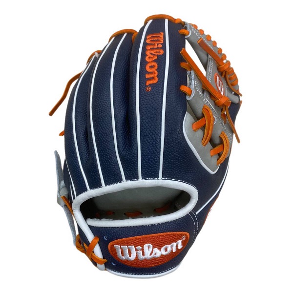 品番:WBW100937 カラー:グレー×ネイビーSS 表革:ベーシックレザーRO+スーパースキン 裏革:共革 サイズ:11.5インチ ポジション:内野手用(右投用) 生産国:ベトナム製