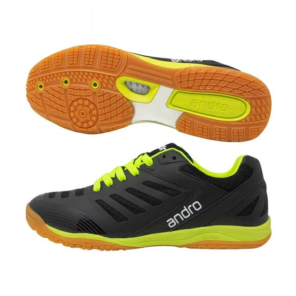 アンドロ(andro) 卓球シューズ クロスステップ 品番:352208 カラー:ブラック×ネオンイエロー サイズ:22.5~30.5cm 素材 甲材:人工皮革・合成繊維 底材:合成底 原産国:中国 ※普段お使いのサイズよりも0.5cm大きめのサイズを推奨いたします