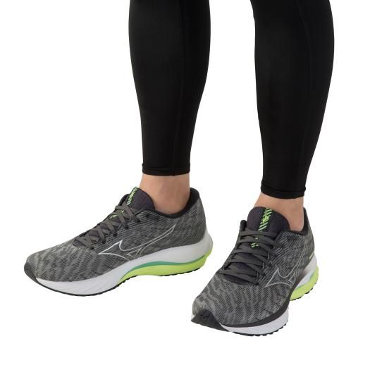 ミズノ(MIZUNO) ランニングシューズ ウエーブライダー26 品番:J1GC220304 カラー:04:グレー×ホワイト×ライム サイズ:25.0~29.0cm 素材 甲材:合成繊維×人工皮革 底材:合成底 質量:約285g(27.0cm片方) インソール:プレミアムインソール(取り外し可) シューズ幅:2E相当の方向け 原産国:ベトナム製
