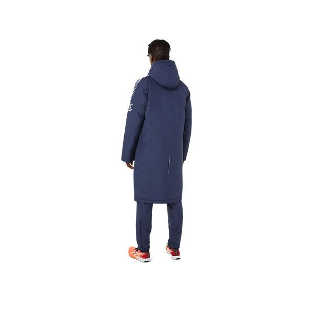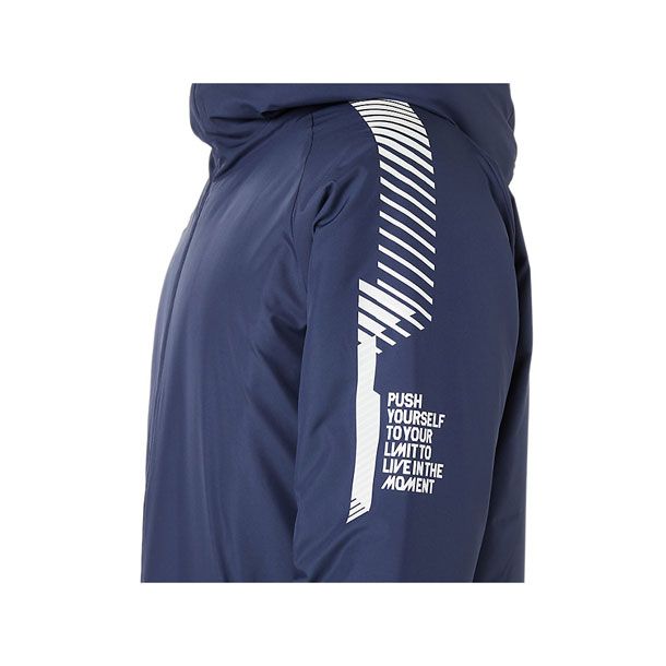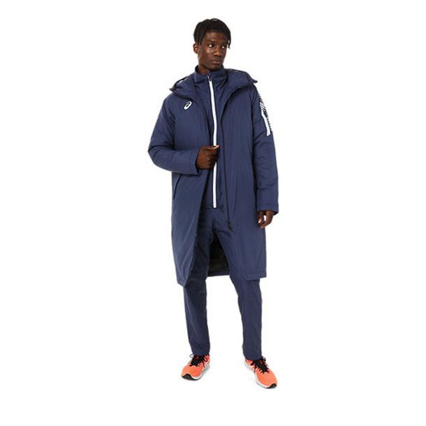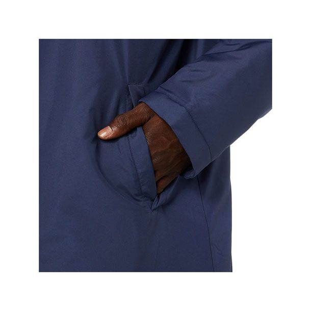 アシックス(asics) 中綿ロングコート LIMO 品番:2031C680 カラー:ミッドナイト(402) サイズ:S、M、L、XL 素材 身頃:タフタ 中わた/ポリエステルわた 裏地/ポリエステルタフタ 身頃:ポリエステル100% 中わた/ポリエステル100% 裏地/ポリエステル100% 機能・特徴 内ポケット付き 適度な防風性をもつポリエステルタフタを表側に使用し、濡れに対応して乾きやすい中わたを裏地と挟み込んだ3層構造を採用。 口元までカバーするやや高めのネック形状で保温性に配慮し、フィット性を調整するドローコードを内蔵。 フロントには、動きへの追従性や衣服内温度調整がしやすい上下開閉が可能なダブルスライダーを使用しています。 両サイドはハンドウオーマーポケットを装備し、左内側に小物入れに便利な内ポケットを装備。 リフレクター仕様のASICS JAPONISM CONCEPTのグラフィックTABがデザインのアクセントに。 また、背中のバックセンターラインは再帰反射性プリント。 軽量な素材を組み合わせ、ややゆとりあるシルエットに仕上げることで、着用時の快適さを追求した防寒ウエアです。 生産地:ベトナム