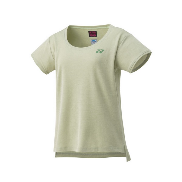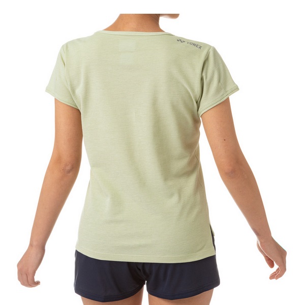 ヨネックス(YONEX) ウィメンズ Tシャツ 品番:16597 カラー:355(スモークグリーン) サイズ:S・M・L・O・XO 素材:綿65%、ポリエステル35% 機能:ベリークール、抗ウイルス加工、オーガニックコットン、再生ポリエステル 原産国:中国