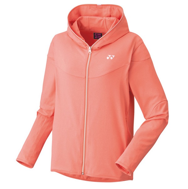 ヨネックス(YONEX) ウィメンズ ニットウォームアップパーカー 品番:58097 カラー:601(コーラル) サイズ: S・M・L・O・XO 素材:ポリエステル88%、ポリウレタン12% 機能:ストレッチ、制電 原産国:ベトナム