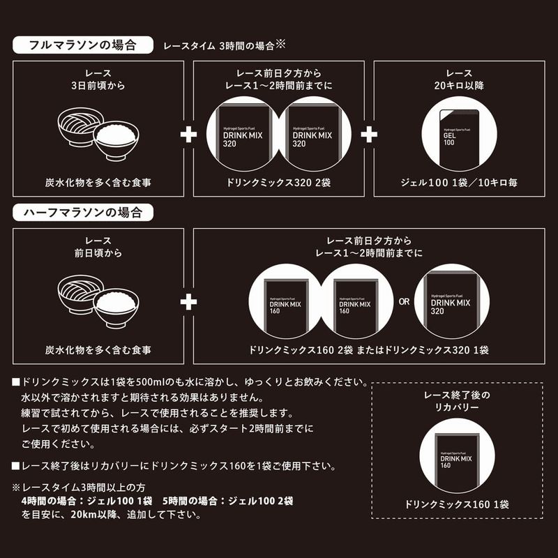 商品説明 水分補給が最優先。且つ多くのエネルギーが必要な場合は、DRINK MIX 160がオススメです。 しっかりと水分を補給し、エネルギーも同時に補うことが可能です。1回分に40グラムの炭水化物が含まれています。