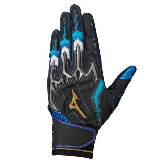 ミズノ(MIZUNO) ミズノプロ バッティング手袋 両手用 シリコンパワーアークLI W-Leather 品番:1EJEA50109 カラー:09:ブラック×ブルー×スカイブルー(掌部カラー:ネイビー) サイズ:22~27cm 素材 掌部:羊革(型押し) 当て革部:羊革(型押し) 甲部:合成皮革、ポリエステル、ナイロン、ポリウレタン 機能・特徴 シリコンパワーアークライン デュアルテンションベルト(手首部) ダイヤエンボスシープレザー×限定ワイド当て革補強付き(掌部) パワーアーク専用指先独自縫製 パワーアーク専用ワイドロングベルト(手首ベルト部) 原産国:ベトナム製、フィリピン製