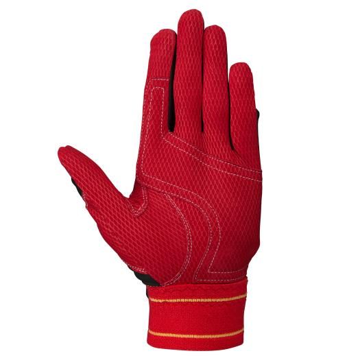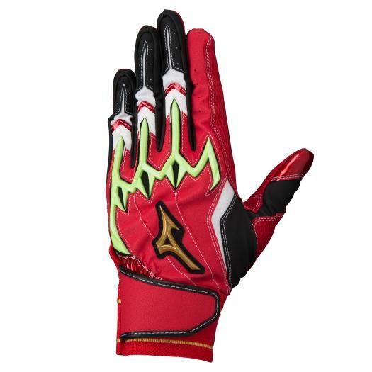 ミズノ(MIZUNO) ミズノプロ バッティング手袋 両手用 シリコンパワーアークLI W-Leather 品番:1EJEA50162 カラー:62:レッド×ブラック×ライム(掌部カラー:レッド) サイズ:22~27cm 素材 掌部:羊革(型押し) 当て革部:羊革(型押し) 甲部:合成皮革、ポリエステル、ナイロン、ポリウレタン 機能・特徴 シリコンパワーアークライン デュアルテンションベルト(手首部) ダイヤエンボスシープレザー×限定ワイド当て革補強付き(掌部) パワーアーク専用指先独自縫製 パワーアーク専用ワイドロングベルト(手首ベルト部) 原産国:ベトナム製、フィリピン製