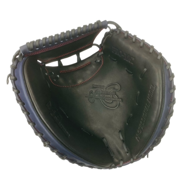 ハタケヤマ(HATAKEYAMA) 軟式野球用 キャッチャーミット 品番:PRO-M62-F カラー:ブラック×ネイビー 素材 表革:北米ステアハイド 裏革:北米ステアハイド ポジション:捕手用 左右:右投用 基本モデル:M62型 甲斐モデル シリコンラベル 日本製