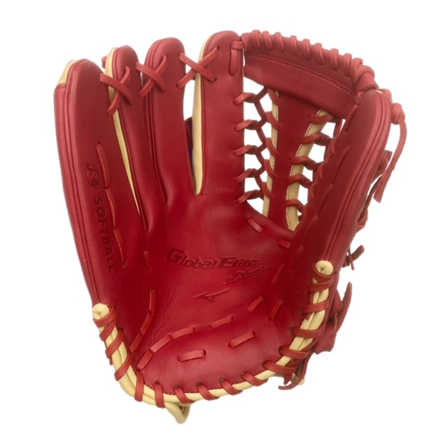 ミズノ(MIZUNO) グローバルエリート ソフトボールグラブ 内野手用 品番:1AJGS27707 カラー:レッド×ブロンド(6280) 素材:受球面・背面:クレストハイド(天然皮革:牛革) ポジション:内野手向け サイズ:14 左右:左投用 専用袋付(中国製) フィリピン製