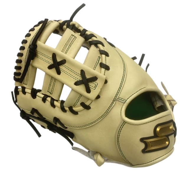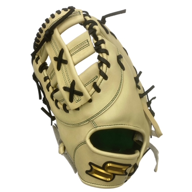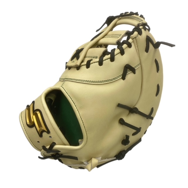 エスエスケイ(SSK) プロエッジ 硬式 オーダーファーストミット スポコバオリジナル 品番:PEOF833GK カラー 本体:キャメル 平裏:Dグリーン ヘリ革:キャメル ステッチ:Dグリーン バンド裏ムートン:ブラック 紐革:ブラック モデル:833型 ウェブ:Fクロスウェブ バックスタイル:ベルトスタイル ロゴマーク:ブロンズゴールド パッド芯:硬め ポジション:一塁手用 左右:左投用 付属品:専用グラブ袋付き 原産国:中国