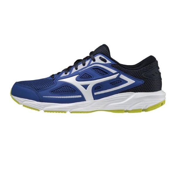 ミズノ MIZUNO ランニングシューズ マキシマイザー 24 品番:K1GA2200 カラー:27(ブルー×ホワイト×イエロー) サイズ:24.5~28.0、29.0、30.0cm 甲材:合成繊維、人工皮革、合成皮革 底材:合成底 質量:約250g(27.0cm片方) インソール:カップインソール(取り外し可) 原産国:ベトナム製