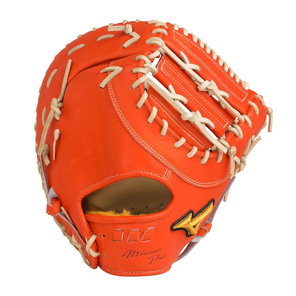 ミズノ(MIZUNO) ミズノプロ 硬式ファーストミット 5DNAテクノロジー BSSショップ限定 品番:1AJFH27200 カラー:52(スプレンディッドオレンジ) 素材:ジマニティレザーテン(天然皮革:牛革) サイズ:TK型 ポジション:一塁手用(ポケット普通) 左右:右投用 付属品:BSSショップ限定専用袋付(中国製) 原産国:中国製