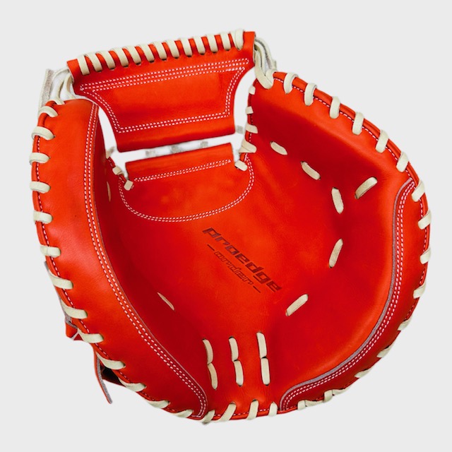エスエスケイ(SSK) プロエッジ 硬式 オーダーキャッチャーミット スポコバオリジナル 阪神タイガース 梅野 隆太郎モデル 品番:PEOM044BL33 カラー 本体:レディッシュブラウン 平裏:ブルー ヘリ革:レディッシュブラウン ステッチ:ホワイト バンド裏ムートン:ブラック 紐革:キャメル モデル:044型 ウェブ:基本ウェブ バックスタイル:フリーフレクション ロゴマーク:ブロンズゴールド ファンクション:U-LOOP パッド芯:硬め 指カバー(指当て):指当て ポジション:捕手用 左右:右投用 付属品:専用グラブ袋付き 原産国:中国