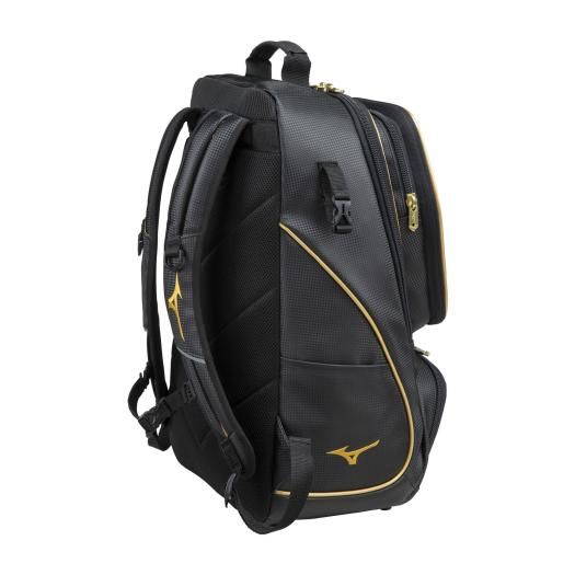 ミズノ(MIZUNO) ミズノプロ バックパック 40L 品番:1FJD3000 カラー:90:ブラック×ホワイト 素材:合成皮革(PVC) サイズ:L34×W21×H54cm 質量:約1600g 容量:約40L 機能・特徴 ・サイドのフックで防具、ヘルメットなど取付可能 ・両サイドポケット付きファブリーズも入るサイズ ・選手の安全に配慮した再帰反射パイピング ・底部も合成皮革で水が染み込みにくい設計 原産国:中国製