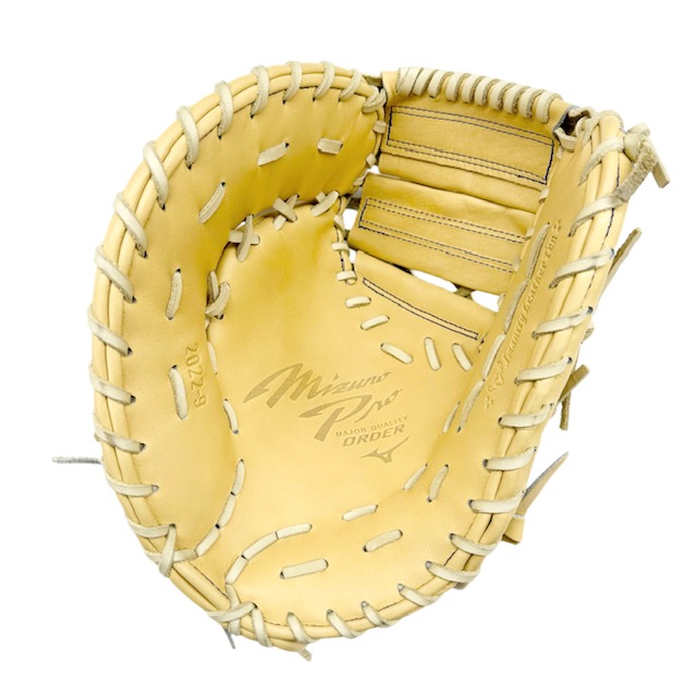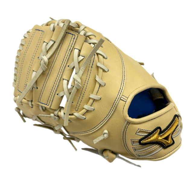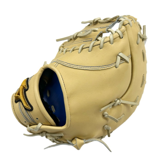 ミズノ(MIZUNO) BSSショップ限定 ミズノプロ 硬式ファーストミット スポコバオリジナル 品番:1AJFH88250 カラー:ブロンド(80H) 素材:ジマニティレザーテン(天然皮革:牛革) サイズ:(基本モデルズバリ) バックスタイル:ノーマルスタイル 裏革カラー:ロイヤルブルー(22) ステッチカラー:Pネイビー(12) 革紐カラー:ブロンド(80) ベロ裏カラー:(ブラック) IBEライン:あり 芯スタイル:ヨコトジダブル モデル:村上宗隆(ヤクルト)モデル ポジション:一塁手用 左右:左投用 付属品:専用袋付き 原産国:日本製