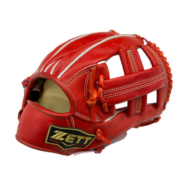 ゼット ZETT プロステイタス 硬式グラブ 品番:BPROG216S カラー:5800(Dオレンジ) 素材:天然皮革製(表/キップレザー、平裏/キップレザー) サイズ:4 ポジション:遊撃手、二塁手用(右投用) 付属品:専用袋付き 原産国:日本製