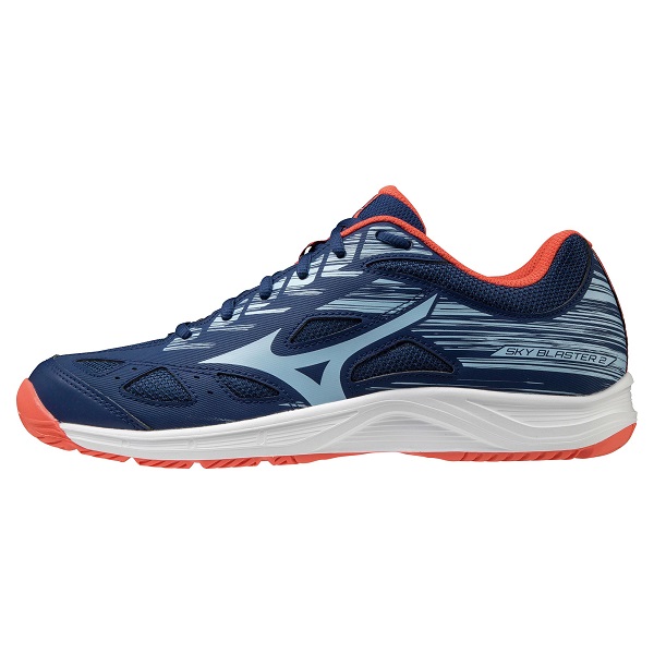 ミズノ(MIZUNO) バドミントンシューズ スカイブラスター 2 品番:71GA2045 カラー:19(ネイビー×サックス×ピンク) サイズ:22.5~27.5cm 素材 甲材:人工皮革、合成繊維 底材:合成底 インソール:カップインソール(取り外し可) 質量:約275g(27.0cm片方) シューズ幅:2E相当の方向け 原産国:ベトナム製
