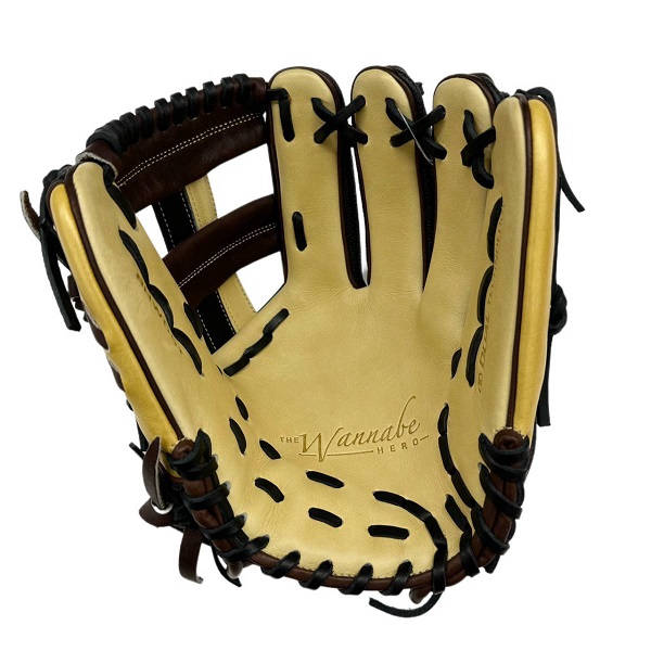 ウィルソン(Wilson)軟式グラブ WANNABE HERO DUAL 品番:WBW101171 カラー:ブロンド×ブラックSS 表革:ベーシックレザーRG+スーパースキン 裏革:ソフトフィットレザー サイズ:11.5インチ(D5型) ポジション:内野手用/ユーティリティ用(右投用) 詳細:スーパースキン仕様/小指2本入れ対応 生産国:ベトナム製
