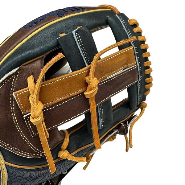 ウィルソン(Wilson)軟式グラブ WANNABE HERO DUAL 品番:WBW101172 カラー:Dブラウン×ネイビーSS 表革:ベーシックレザーRG+スーパースキン 裏革:ソフトフィットレザー サイズ:11.5インチ(D5型) ポジション:内野手用/ユーティリティ用(右投用) 詳細:スーパースキン仕様/小指2本入れ対応 生産国:ベトナム製