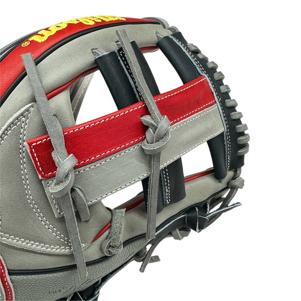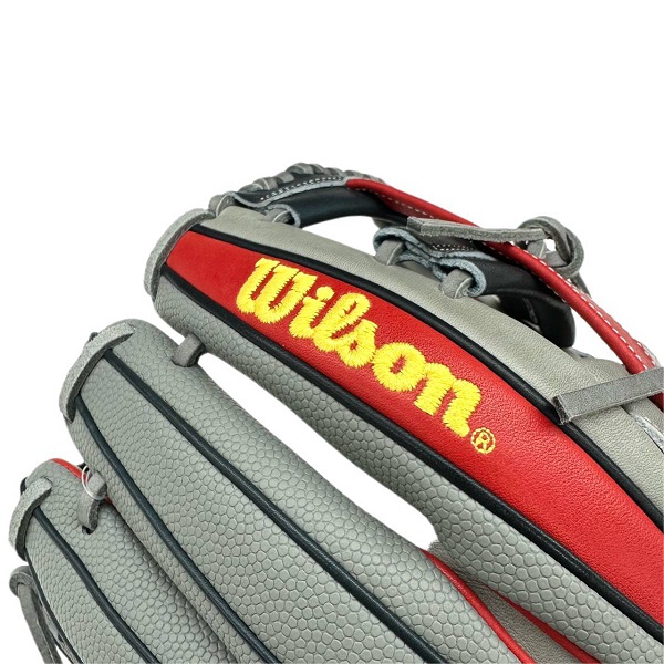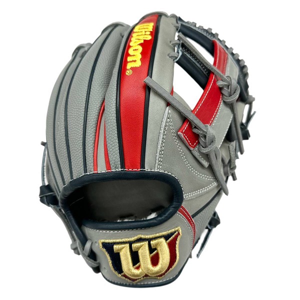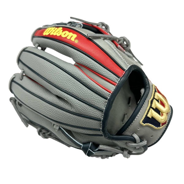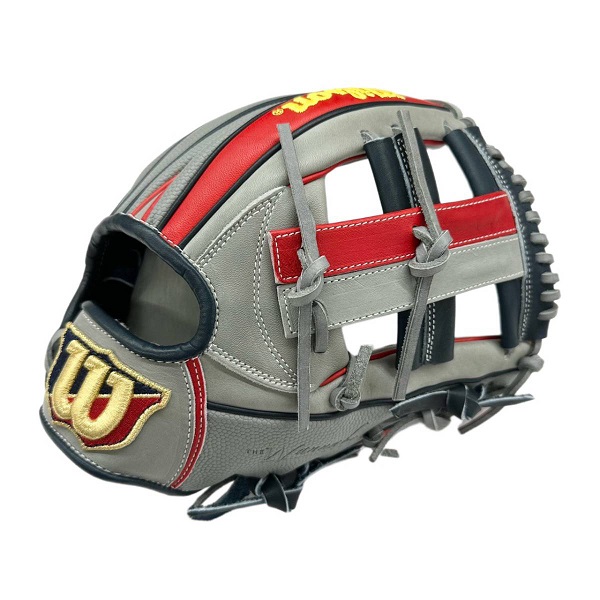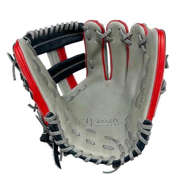 ウィルソン(Wilson)軟式グラブ WANNABE HERO DUAL 品番:WBW101173 カラー:グレー×レッド(グレーSS) 表革:ベーシックレザーRG+スーパースキン 裏革:ソフトフィットレザー サイズ:11.5インチ(D5型) ポジション:内野手用/ユーティリティ用(右投用) 詳細:スーパースキン仕様/小指2本入れ対応 生産国:ベトナム製