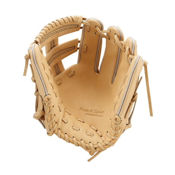 きめ細かくしっとりとした上質なヨーロッパ産キップレザーに表平裏に当て革補強を施し捕球面の張りとしっかり感にこだわったプロステイタスSEシリーズ。刺繍風ウェルダーラベル、ブラウン色ムートンなどSEシリーズ特別仕様モデル。