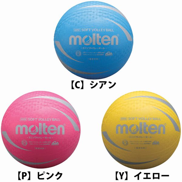 30%OFF ¥1500⇒¥1050(税抜) モルテン molten ミニソフトバレーボール 小学校中・低学年用 品番:S2V1200 カラー C シアン P ピンク Y イエロー O オレンジ G グリーン W ホワイト