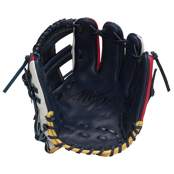 ミズノ(MIZUNO) ミズノプロ 軟式グラブ 品番:1AJGR28113 カラー:2962(Dブルー×レッド) 素材:プレキシーエリートR(天然皮革:牛革) 左右:右投用 サイズ:9 ポジション:内野手用 付属品:専用袋付(中国製)