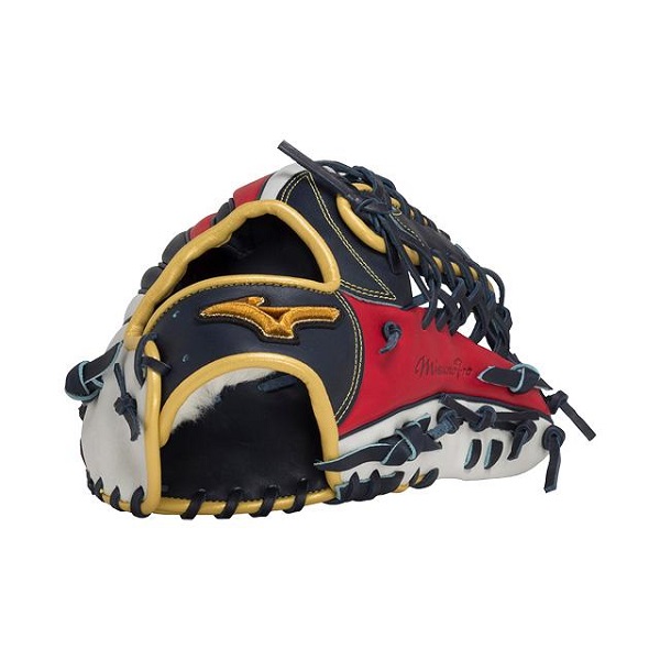ミズノ(MIZUNO) ミズノプロ 軟式グラブ 品番:1AJGR28107 カラー:2962(Dブルー×レッド) 素材:プレキシーエリートR(天然皮革:牛革) 左右:右投用/左投用 サイズ:18N ポジション:外野手用 付属品:専用袋付(中国製)