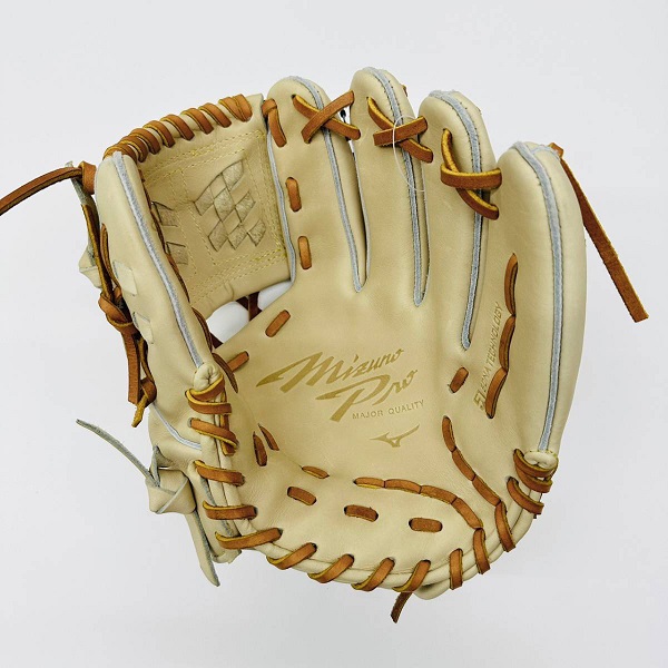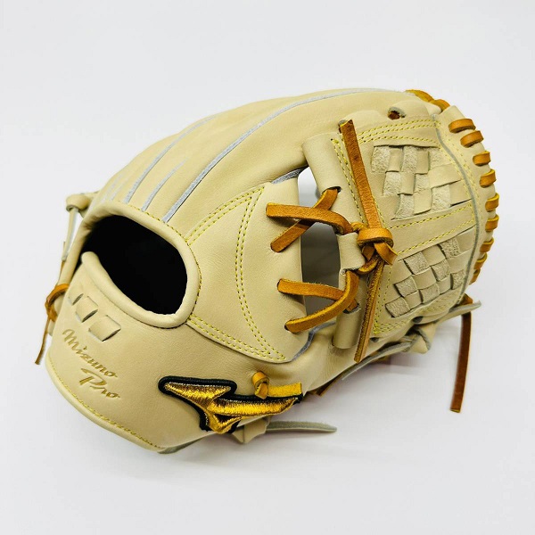 ミズノ(MIZUNO)ミズノプロ 硬式グラブ 5DNAテクノロジー 品番:1AJGH28203 カラー:8059(ブロンド×コルク) 素材:ジェネラルキップレザー(天然皮革:牛革) サイズ:9 ポジション:内野手用 左右:右投用 付属品:BSSショップ限定専用袋付(中国製)