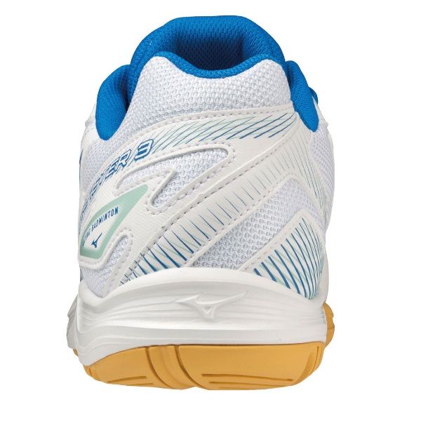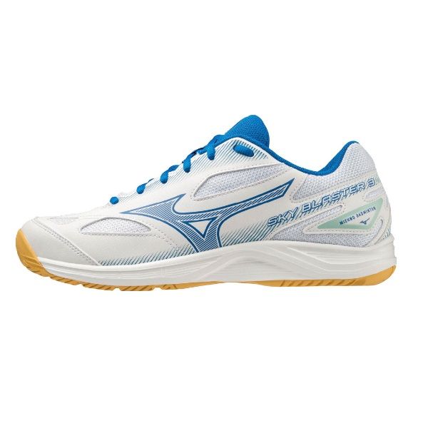 ミズノ(MIZUNO) バドミントンシューズ スカイブラスター3 品番:71GA234510 カラー:10:ホワイト×ブルー×ターコイズ サイズ:19.0、20.0、21.0、22.0~28.5cm 素材 甲材:人工皮革×合成繊維 底材:合成底 シューズ幅:3E相当 質量:約275g(27.0cm片方) インソール:カップインソール、取り外し可 ソール特徴:ノンマーキングソール 生産国:ベトナム製