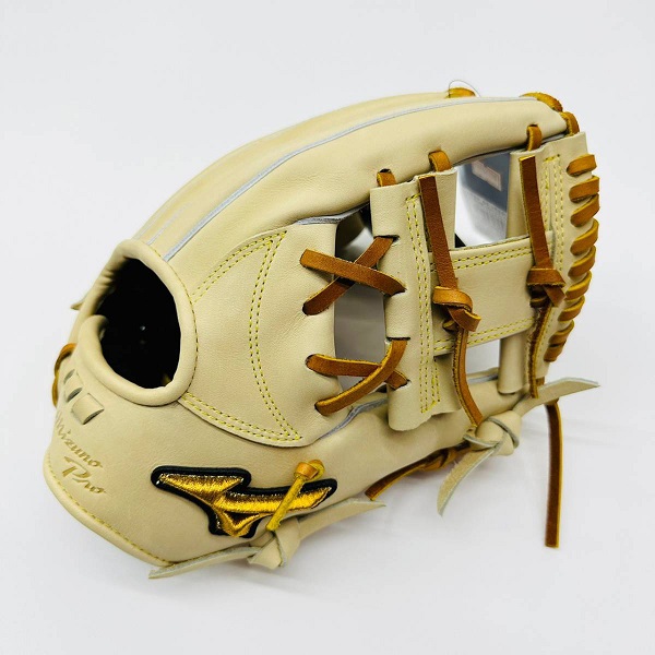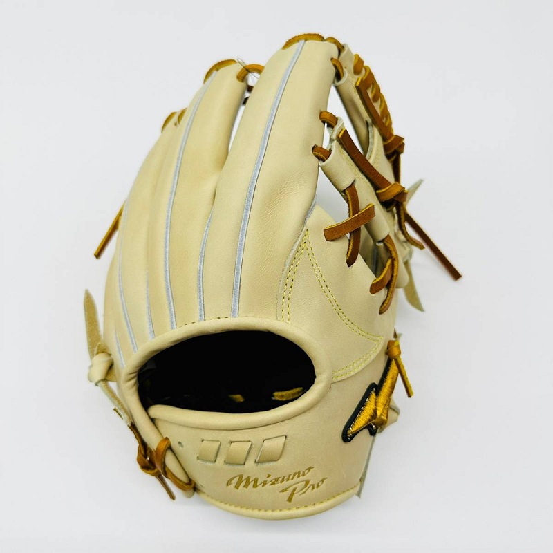 ミズノ(MIZUNO)ミズノプロ 硬式グラブ 5DNAテクノロジー 品番:1AJGH28213 カラー:8059(ブロンド×コルク) 素材:ジェネラルキップレザー(天然皮革:牛革) サイズ:9 ポジション:内野手用 左右:右投用 付属品:BSSショップ限定専用袋付(中国製)