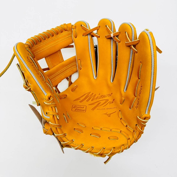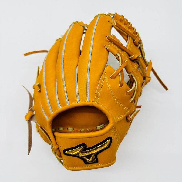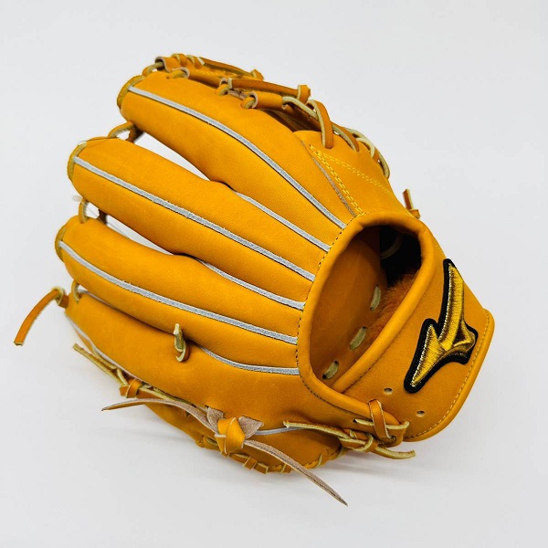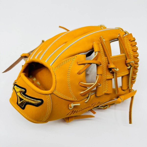 ミズノ(MIZUNO)ミズノプロ 硬式グラブ CRAFTED Edition 品番:1AJGH28033 カラー:542(ビターオレンジ) 素材:プレキシーキップレザー(天然皮革:牛革) サイズ:9 ポジション:内野手用(MM型) 左右:右投用 付属品:専用袋付き 原産国:日本製