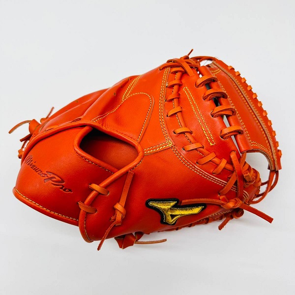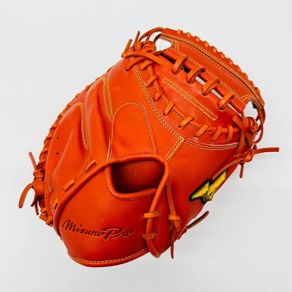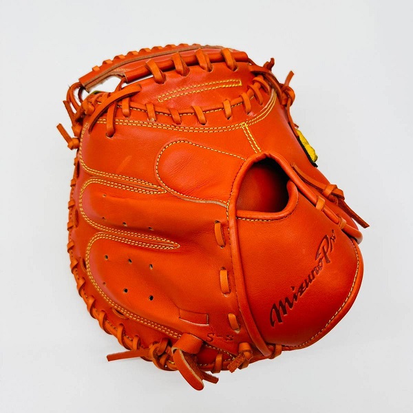 ミズノ(MIZUNO) ミズノプロ 硬式キャッチャーミット 號SAKEBI 品番:1AJCH28220 カラー:52(スプレンディッドオレンジ) 素材:ジマニティレザーテン(天然皮革:牛革) ポジション:捕手用(S-S型) 左右:右投用 付属品:専用袋付き 原産国:中国製