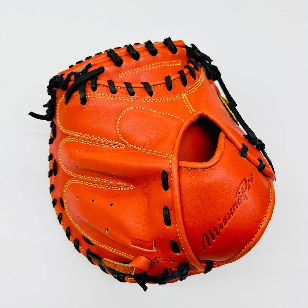 ミズノ(MIZUNO) ミズノプロ 硬式キャッチャーミット 號SAKEBI 品番:1AJCH28220 カラー:5209(スプレンディッドオレンジ×ブラック) 素材:ジマニティレザーテン(天然皮革:牛革) ポジション:捕手用(S-S型) 左右:右投用 付属品:専用袋付き 原産国:中国製