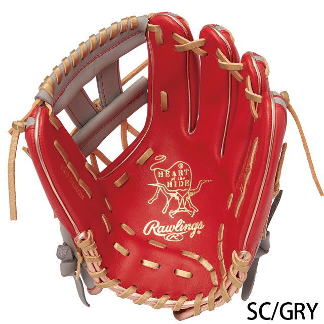 HOH(HEART of the HIDE):ローリングスグラブ伝統の皮革です。厚くて丈夫な皮革の中でも、厳選したステアハイド(生後3~6ヶ月に去勢された成牛の革)を採用。高い耐久性と独自の重厚な風合いで、メジャーリーガーをはじめ多くのプレイヤーから支持されています。
