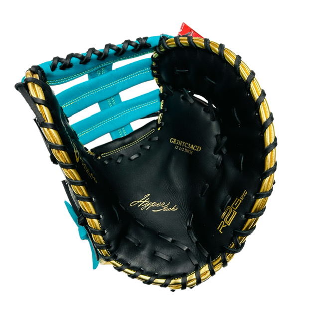 ローリングス(Rawlings) 軟式ファーストミット HYPER TECH COLOR SYNC 品番:GR3HTC3ACD 素材:表革/天然皮革、裏革/天然皮革 生産国:フィリピン カラー:(B/MGRN)ブラック/Mグリーン サイズ:12.5(31.8cm) 左右:右投用