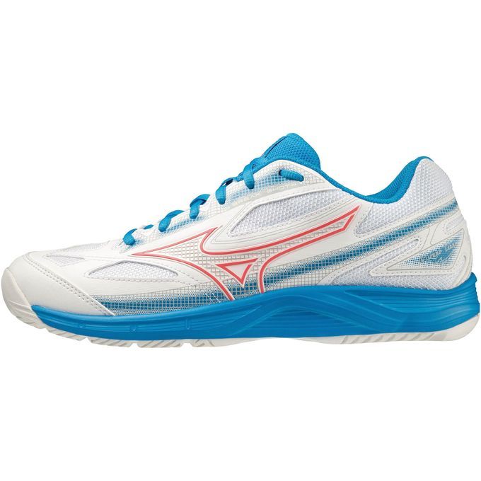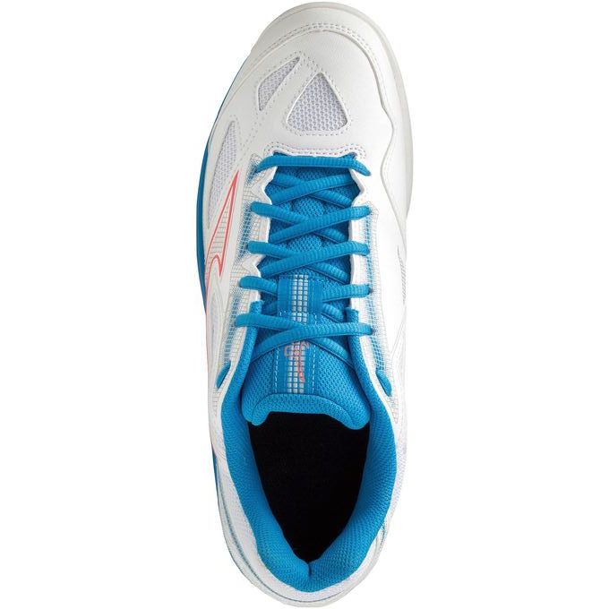 ミズノ(MIZUNO) テニスシューズ ブレイクショット 4 AC 品番:61GA234025 カラー:25:ホワイト×コーラル×ブルー サイズ:22.0~25.5cm 素材 アッパー:人工皮革×合成繊維 ソール:合成底 カット:ローカット ワイズ:2E相当 質量:約290g(27.0cm片方) インソール:カップインソール、取り外し可 用途・目的:オールコート 生産国:ベトナム