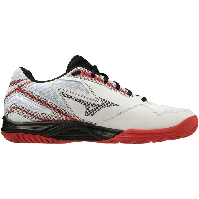 ミズノ(MIZUNO) テニスシューズ ブレイクショット 4 AC 品番:61GA234062 カラー:62:ホワイト×ブラック×レッド サイズ:19.0、20.0、21.0、22.0~28.5cm 素材 アッパー:人工皮革×合成繊維 ソール:合成底 カット:ローカット ワイズ:2E相当 質量:約290g(27.0cm片方) インソール:カップインソール、取り外し可 用途・目的:オールコート 生産国:ベトナム