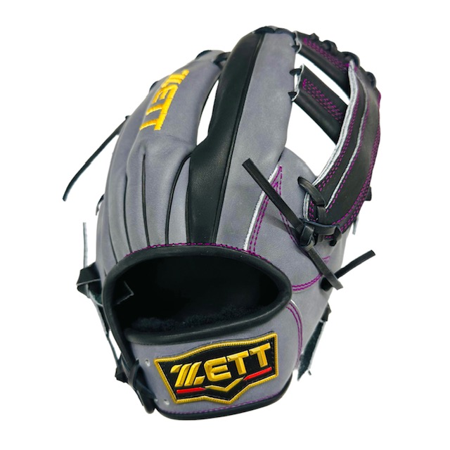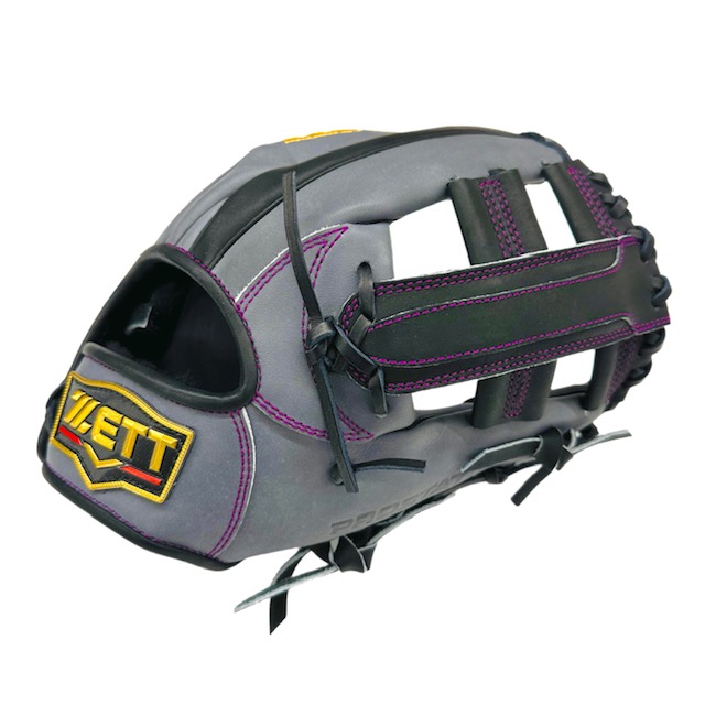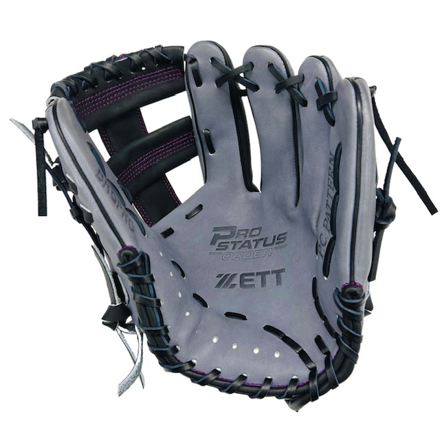 ゼット(ZETT) プロステイタス 軟式オーダーグラブ スポコバオリジナル 品番:BPGPRO カラー:ダークグレー×ブラック 素材:(表)プロステイタスレザー、(平裏)ステア サイズ:4 ウェブ:Nクロス 内芯:Dブーメラン紐抜き 内芯硬さ:普通 内芯暑さ:普通 バックスタイル:スタンダードバック ステッチカラー:パープル 革紐カラー:ブラック黒 ハミダシ:玉ハミ/ブラック黒 ヘリ革:ブラック黒 ラベル:ウェルダーラベル バンド裏ムートン:ブラック黒 モデル:216型 吉川モデル ポジション:内野手用 左右:右投用 付属品:専用袋付き 原産国:日本製