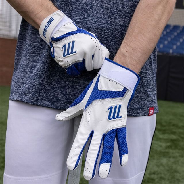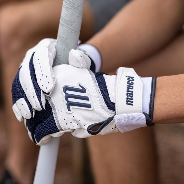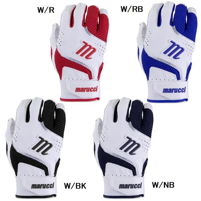 マルーチ(marucci) バッティング手袋 両手用 品番:MBGCD2 カラー ホワイト/レッド(W/R) ホワイト/Rブルー(W/RB) ホワイト/ブラック(W/BK) ホワイト/ネイビー(W/NB) サイズ:S(23~24cm)、M(24~25cm)、L(26~27cm) 素材:天然皮革(ゴートスキン) 機能・特徴 厚い革の手のひらと凹みのあるバッティンググローブ。 柔軟で通気性があり、耐久性に優れています。