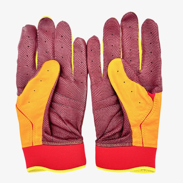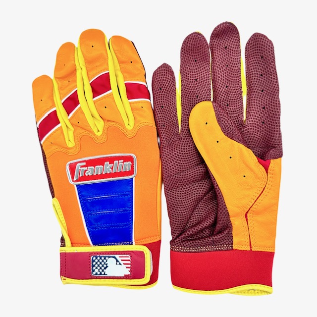 フランクリン(Franklin) バッティンググローブ 両手用 CFX PRO アメコミ風 品番:AMECOMI カラー:オレンジ×レッド(BOOM) サイズ S(17.0~17.8cm) M(17.8~18.4cm) L(18.4~19.7cm) 素材:羊革、合成皮革