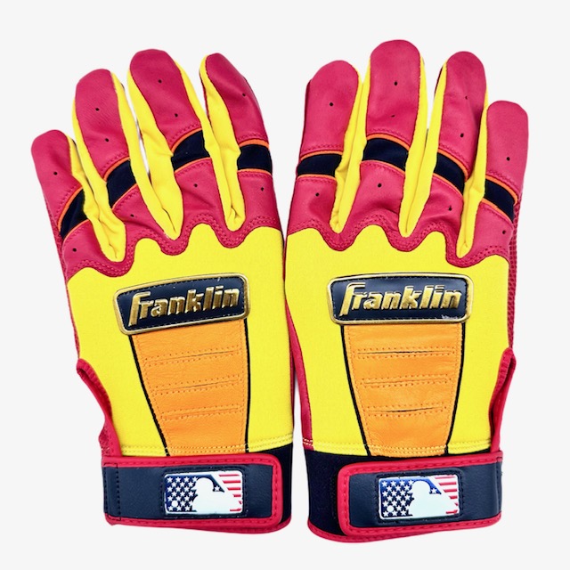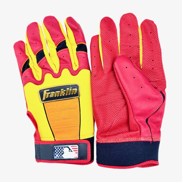 フランクリン(Franklin) バッティンググローブ 両手用 CFX PRO アメコミ風 品番:AMECOMI カラー:レッド×イエロー(POW) サイズ S(17.0~17.8cm) M(17.8~18.4cm) L(18.4~19.7cm) 素材:羊革、合成皮革