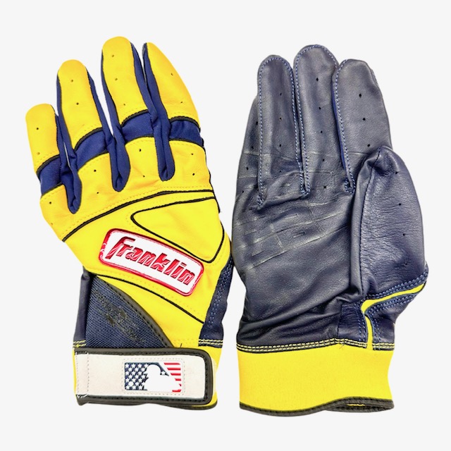 フランクリン(Franklin) バッティンググローブ 両手用 POWERSTRAP アメコミ風 品番:AMECOMI カラー:イエロー×ブルー(BANG) サイズ S(17.0~17.8cm) M(17.8~18.4cm) L(18.4~19.7cm) 素材:羊革、合成皮革