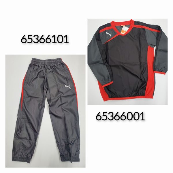 プーマ(PUMA) SPIRIT ピステ ジュニア トライアルコート上下セット 品番:653660-653661 カラー:ブラック(01) サイズ:130、140、150、160 素材 本体:WRブロックウィンド ポリエステル100% 切替:3D ストラクチャードライ ポリエステル100% 生産国:ベトナム製
