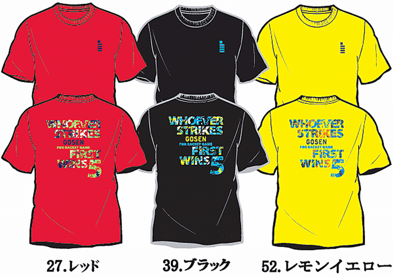 ゴーセン オリジナルTシャツ 先手必勝 品番:PST116 カラー 27 レッド 39 ブラック 52 レモンイエロー サイズ:SS・S・M・L・LL 男女兼用サイズ ポリエステル100%