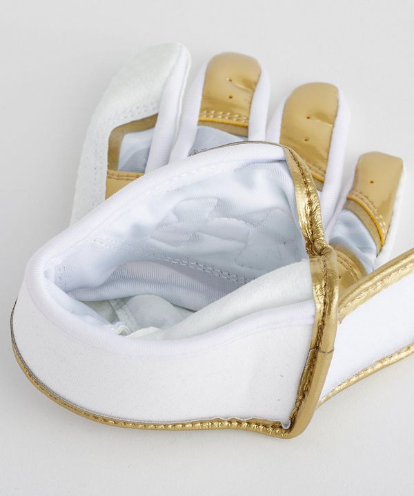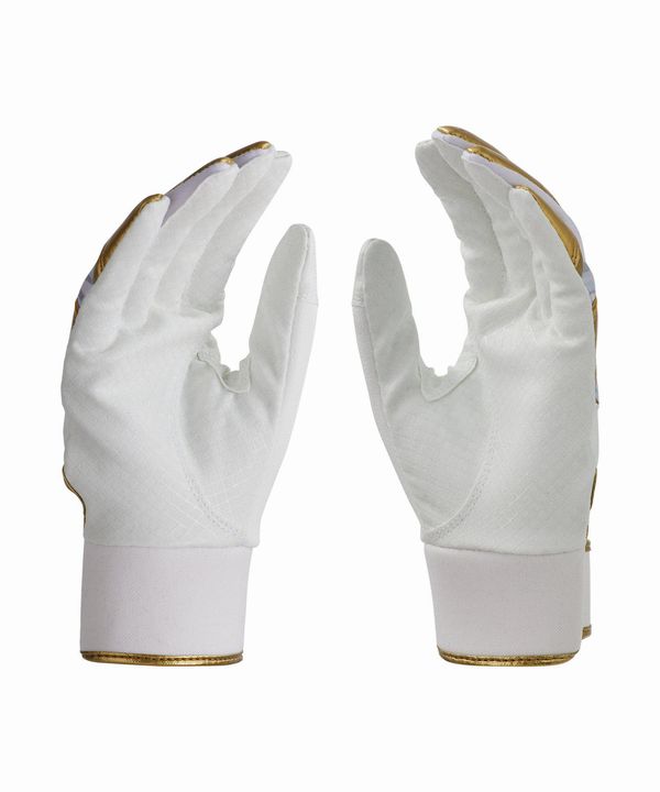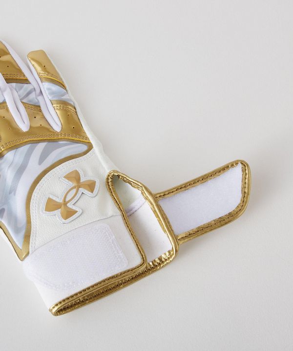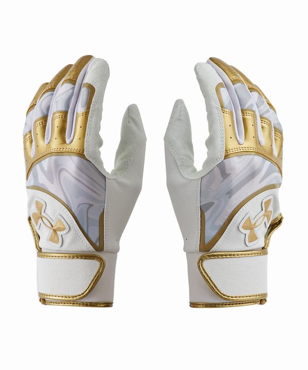 アンダーアーマー(UNDER ARMOUR) ジュニア バッティンググローブ 両手用 UA クリーンアップ 品番:1378254 カラー:WHT/GLD/GLD(100) サイズ:YMD(18-19cm)、YLG(20-21cm) 素材 合成皮革、ポリエステル、ポリウレタン 立体成型:手の構造に沿ったカッティングが、グリップ時のフィット感を高める 原産国:インドネシア