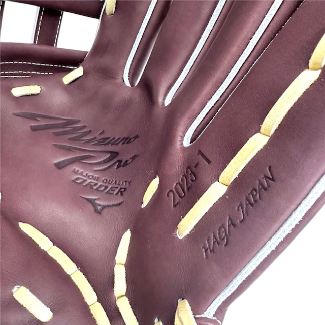 ミズノ(MIZUNO) BSSショップ限定 ミズノプロ 硬式グラブ スポコバオリジナル 品番:1AJGH88251 カラー:プラムブラウン(68) 素材:プレキシーキップレザー(天然皮革:牛革) 裏革カラー:ブロンド(80) サイズ:18N(基本モデルズバリ) ウェブ:クロス6 バックスタイル:ノーマルスタイル ステッチカラー:白(2) 革紐カラー:ブロンド(80) ロゴ:プラチナ モデル:イチローモデル ポジション:外野手用 左右:右投用 付属品:専用袋付き 原産国:日本製